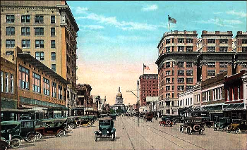 Featured is a postcard image of Austin, Texas circa 1920 ... specifically, the view downtown from the capital building. Private collection.